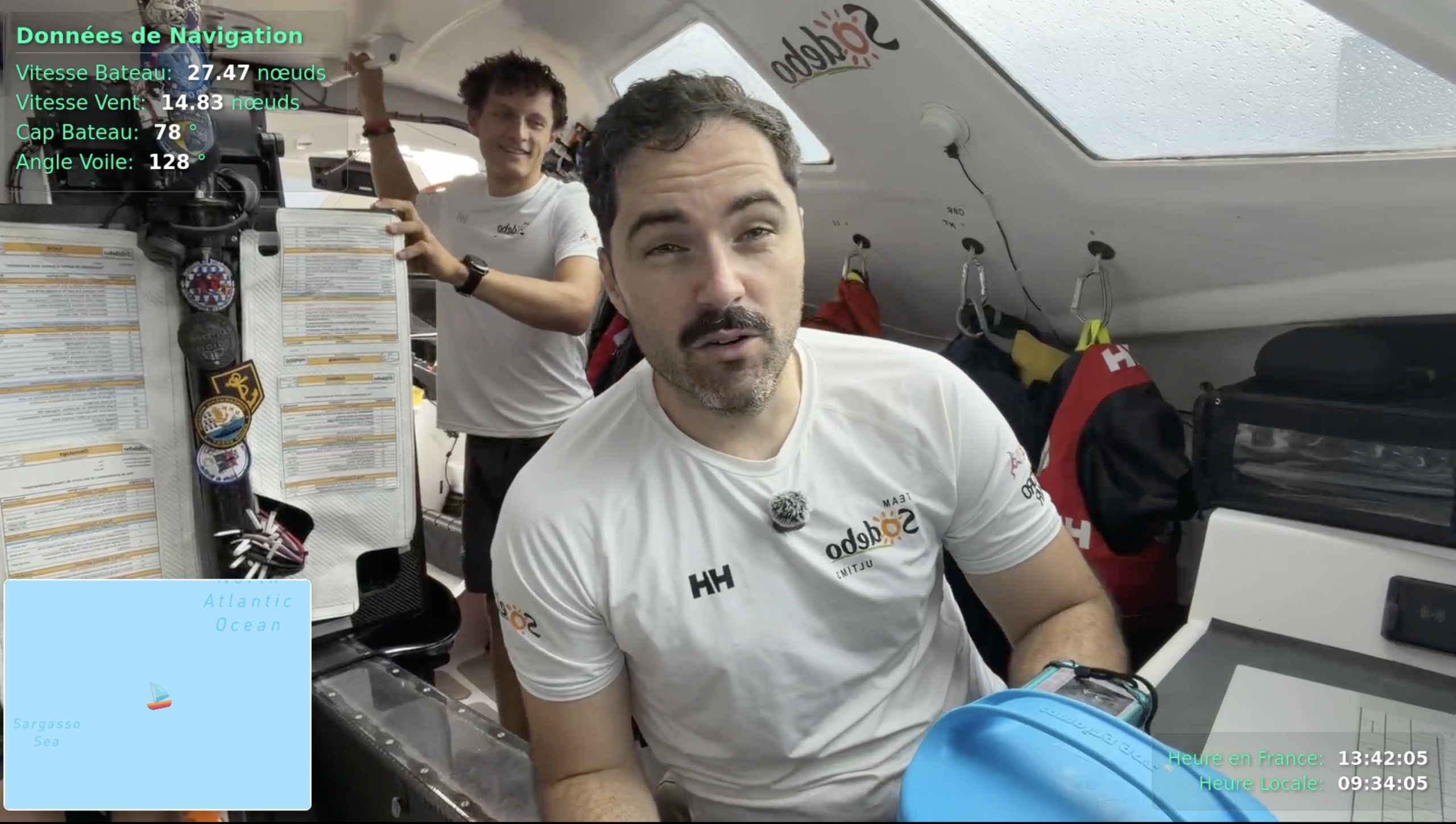 Accompagné de six membres du team Sodebo, sur qui il peut compter pour l’aider à vivre cette traversée exceptionnelle, Rivenzi découvre le quotidien des marins au large : navigation, manœuvres, conditions extrêmes et moments de cohésion à plusieurs milliers de kilomètres des côtes.