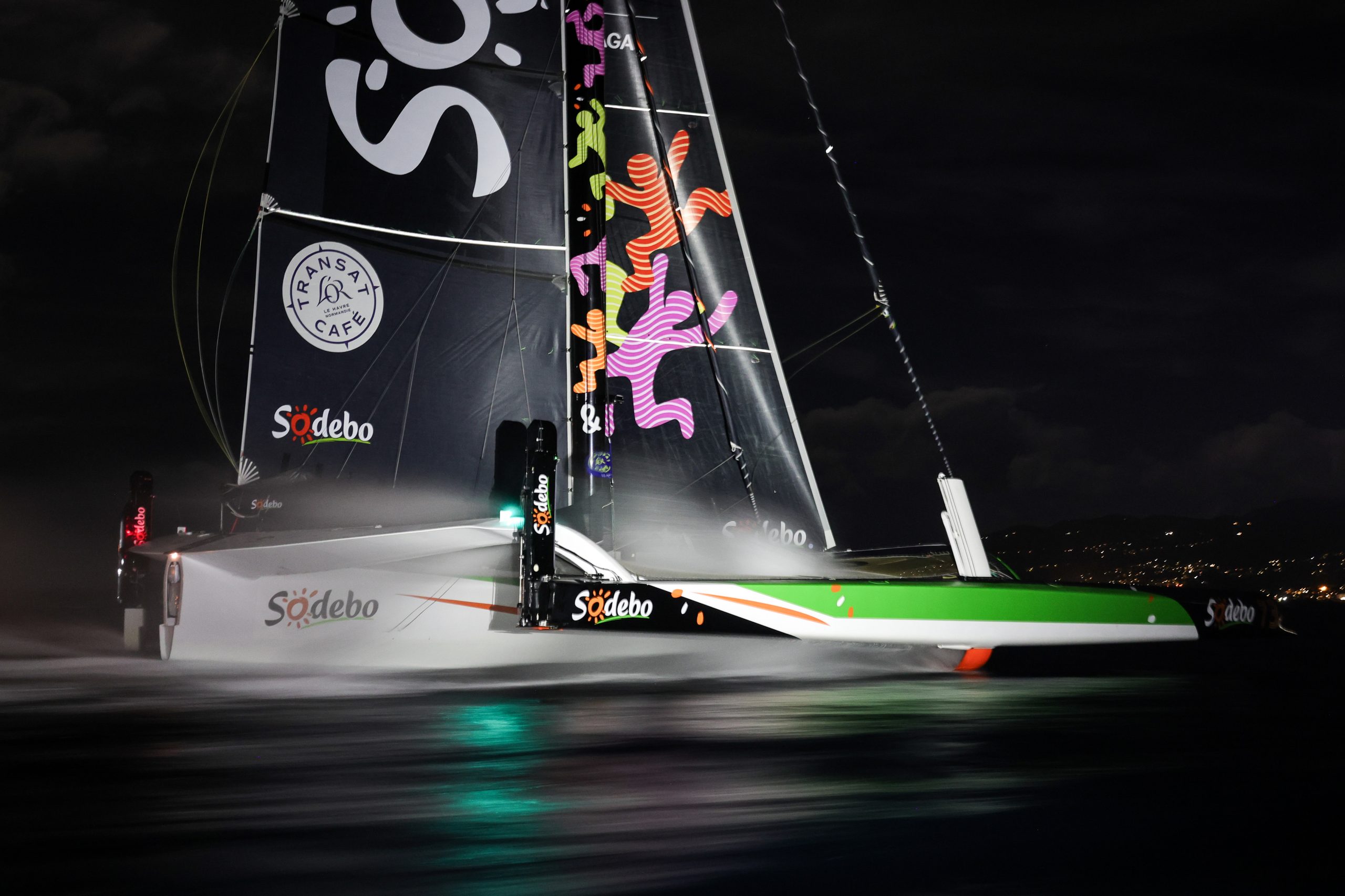 Sodebo Ultim 3 a pris ce jeudi, à 2h40 à Fort-de-France (7h40 en métropole), la deuxième place de la 17e édition de la Transat Café L’Or. Une très belle performance pour Thomas Coville, qui monte ainsi pour la quatrième fois sur le podium de la transat en double (victoires en 1999 et 2017, 2e place en 2015), et Benjamin Schwartz, dont c’était la toute première participation. D’entrée dans le match, le duo a su rivaliser en vitesse avec ses concurrents et faire preuve d’audace lors de certains passages clés de la course. Sodebo Ultim 3, qui arrive en très bon état à Fort-de-France, aura mis 10 jours, 17 heures, 30 minutes et 9 secondes pour boucler les 5400 milles du parcours entre Le Havre et la Martinique. Thomas et Benjamin terminent à seulement 4 heures, 26 minutes et 11 secondes du vainqueur, SVR-Lazartigue (Tom Laperche/Franck Cammas). Ils réalisent ce parcours à la moyenne de 20,97 nœuds sur la route directe (25,60 nœuds sur les 6591 milles réellement parcourus).