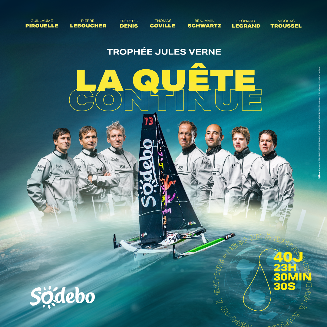 Tenté par les bateaux les plus rapides du monde au fil des générations, le Trophée Jules Verne impose une exigence absolue : naviguer 24h/24 à très haute vitesse, dans certains des environnements les plus isolés et hostiles du globe. Le Team Sodebo s’y engage avec humilité et l’envie de signer un exploit maritime majeur.